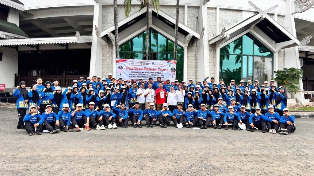 lugasnusantara.co.id, BANJARMASIN – Sebanyak 100 pelajar dari tujuh sekolah menengah di Kalimantan Selatan mengikuti Pelatihan Paduan Suara dalam rangka persiapan upacara Peringatan Hari Ulang Tahun (HUT) ke-80 Republik Indonesia Tahun 2025 tingkat Provinsi Kalimantan Selatan di halaman Gedung Sultan Suriansyah Banjarmasin, Kamis (14/8/2025).