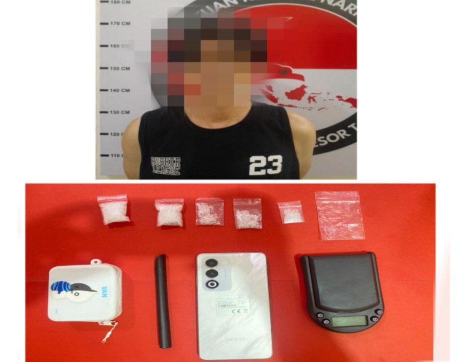 “Saat dilakukan penggeledahan, ditemukan beberapa paket sabu yang disembunyikan di dalam kamar tersangka. DY langsung kami amankan bersama barang bukti,” ujar Iptu Anang.