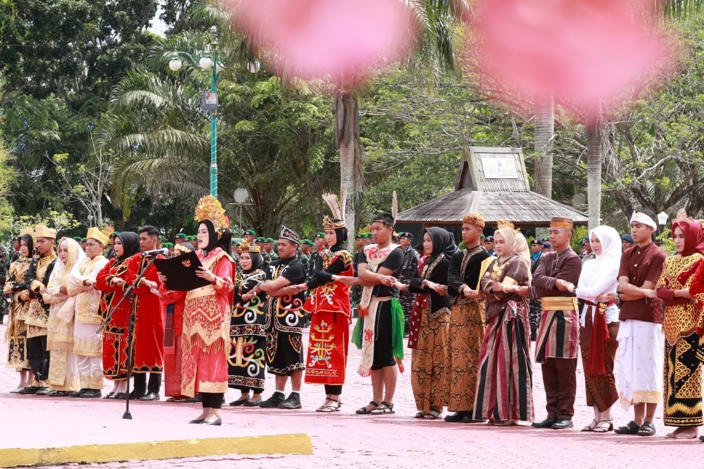 Bertindak sebagai Inspektur Upacara, Bupati Tanah Bumbu Andi Rudi Latif, A.Md.T., S.H., M.M. tampil gagah dengan busana adat Banjar. Penampilannya menjadi sorotan sekaligus wujud kebanggaan terhadap budaya lokal serta pesan kuat tentang pentingnya menjaga persatuan dalam keberagaman.