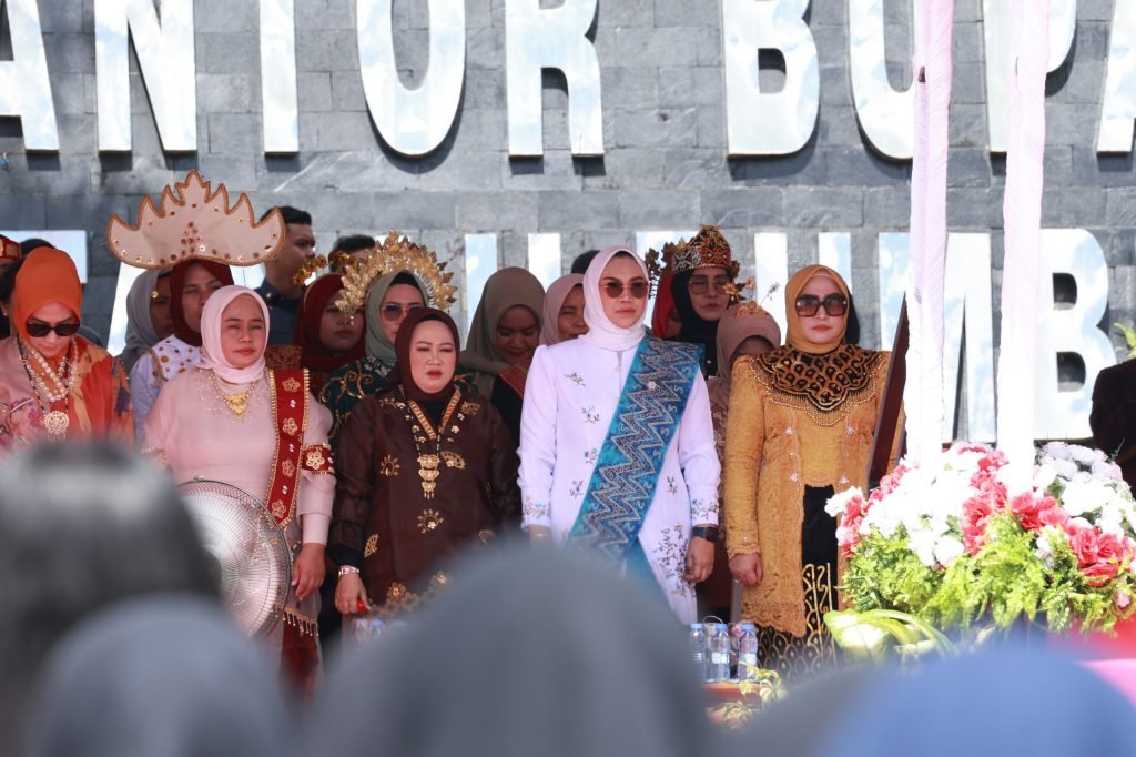 Ketua TP PKK Tanah Bumbu hadir mengenakan pakaian adat Banjar, mencerminkan semangat cinta budaya lokal dan kebanggaan terhadap identitas daerah. Kehadiran Ketua TP PKK menambah warna dalam upacara yang sarat makna kebangsaan tersebut.