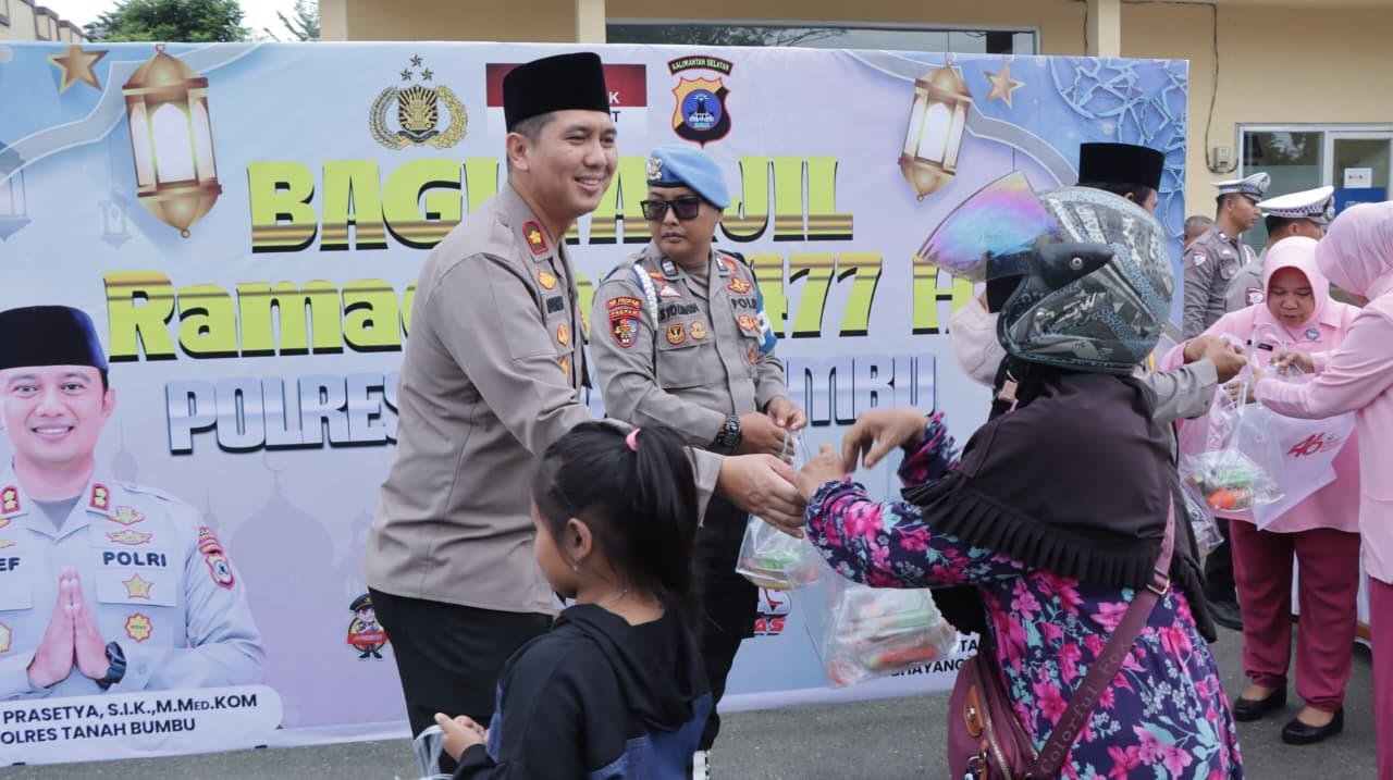 Kapolres Tanah Bumbu AKBP Arief Prasetya mengatakan kegiatan berbagi takjil ini merupakan bentuk kepedulian Polri kepada masyarakat, khususnya di bulan suci Ramadan.
